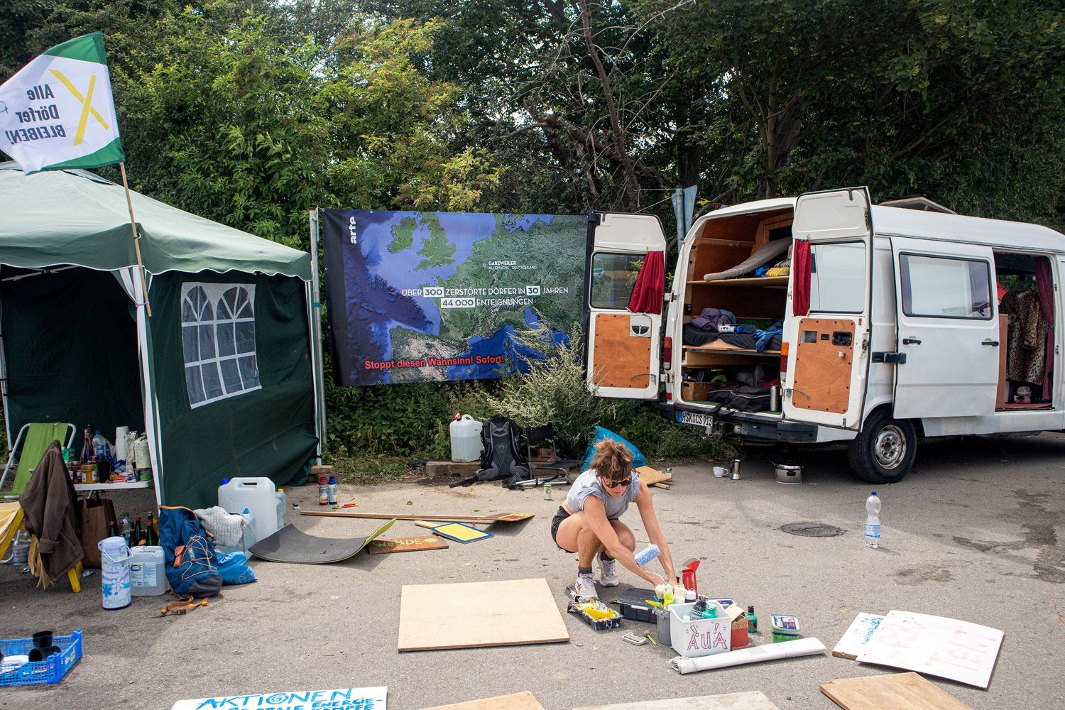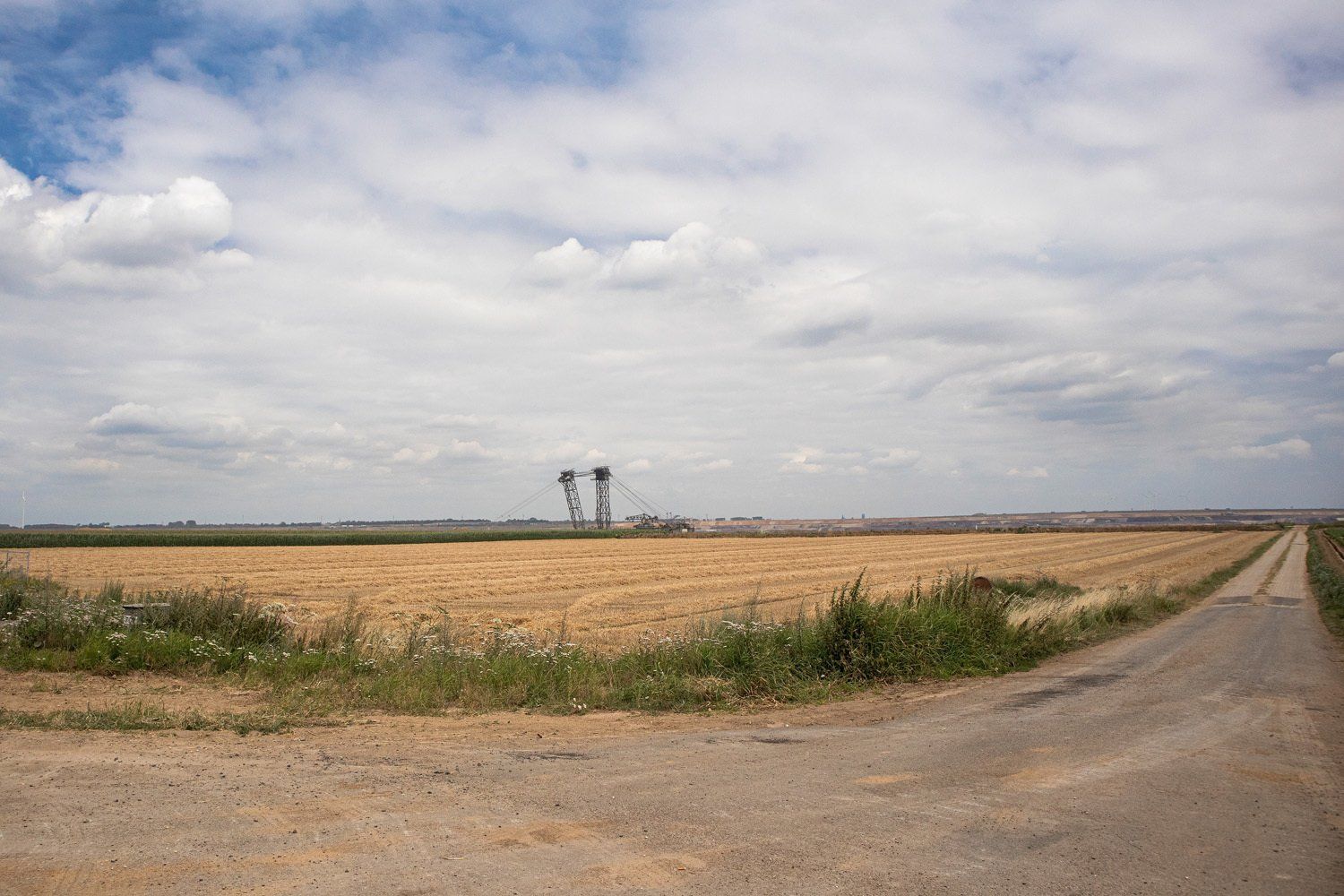 Net over de Nederlandse grens bij Sittard wordt in Duitsland op grote schaal bruinkool gewonnen via dagbouw. Dorpen worden verzwolgen door de gigantische graafmachines.